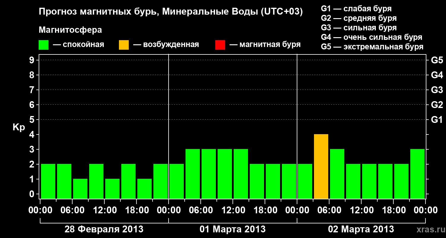Прогноз магнитных бурь Минеральных Водах — 28 февраля 2013 года