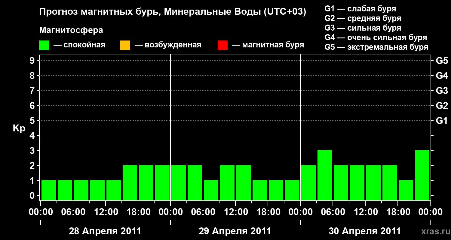 Прогноз магнитных бурь Минеральных Водах — 28 апреля 2011 года