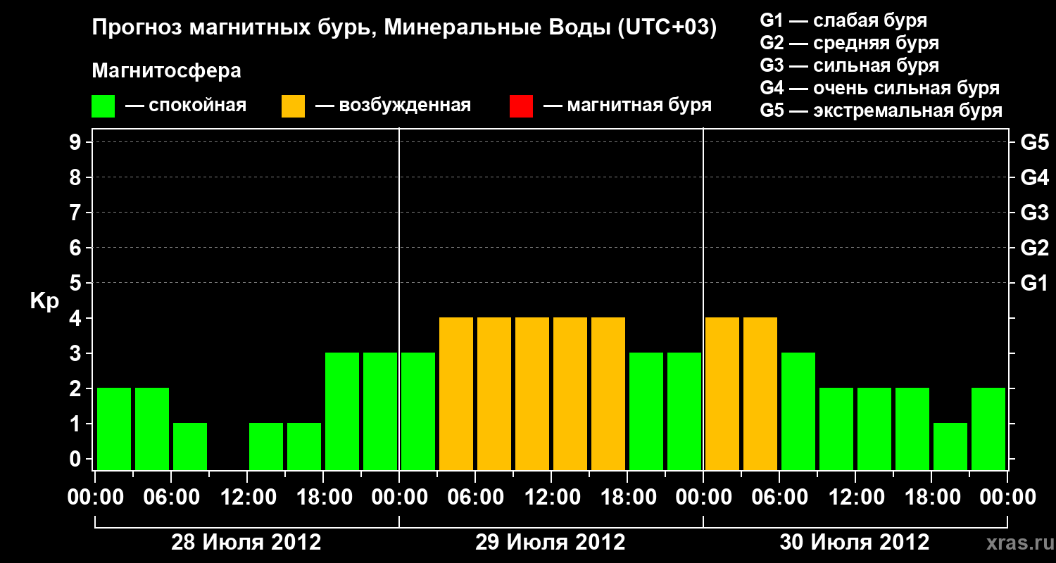 Прогноз магнитных бурь Минеральных Водах — 28 июля 2012 года