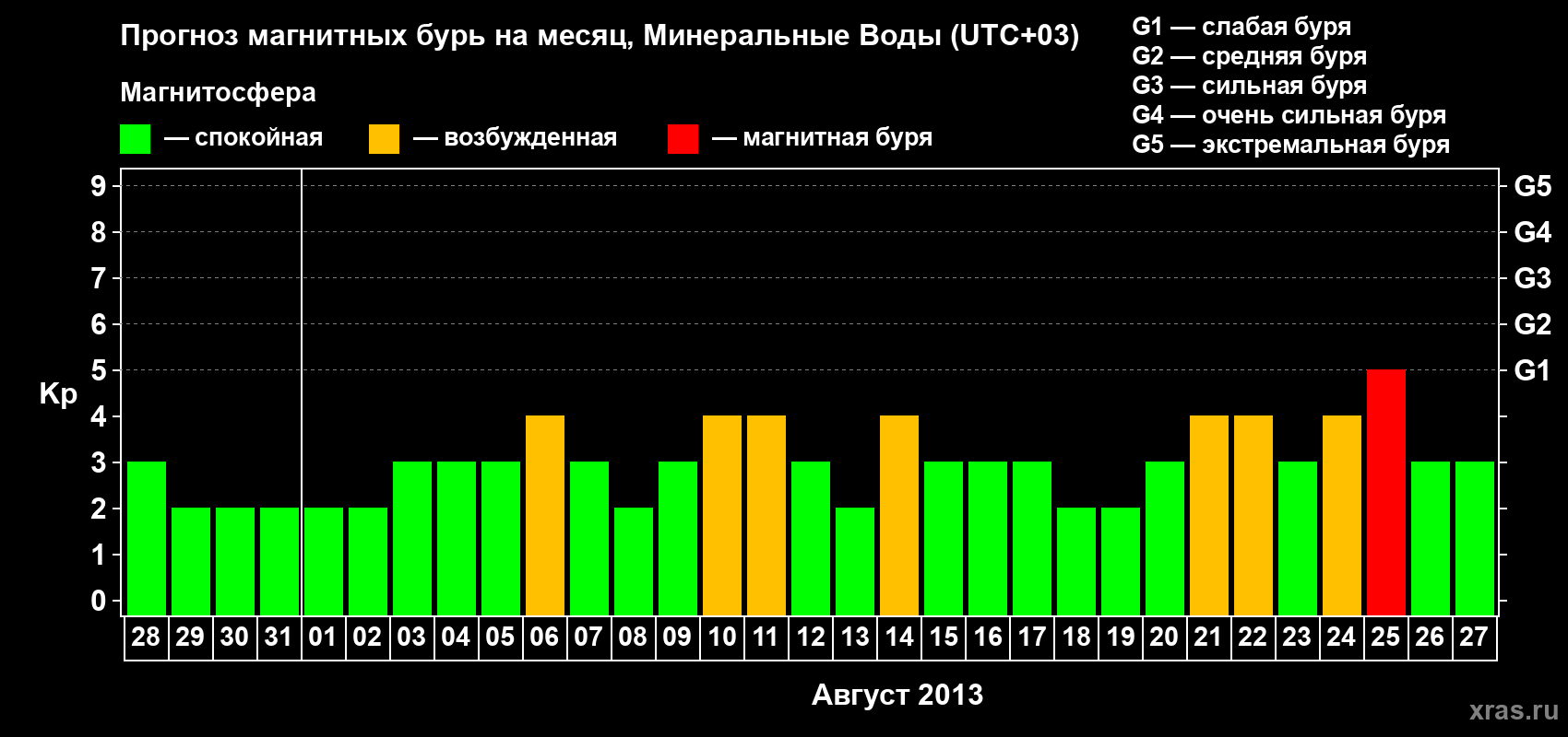 Прогноз магнитных бурь Минеральных Водах — 28 июля 2013 года