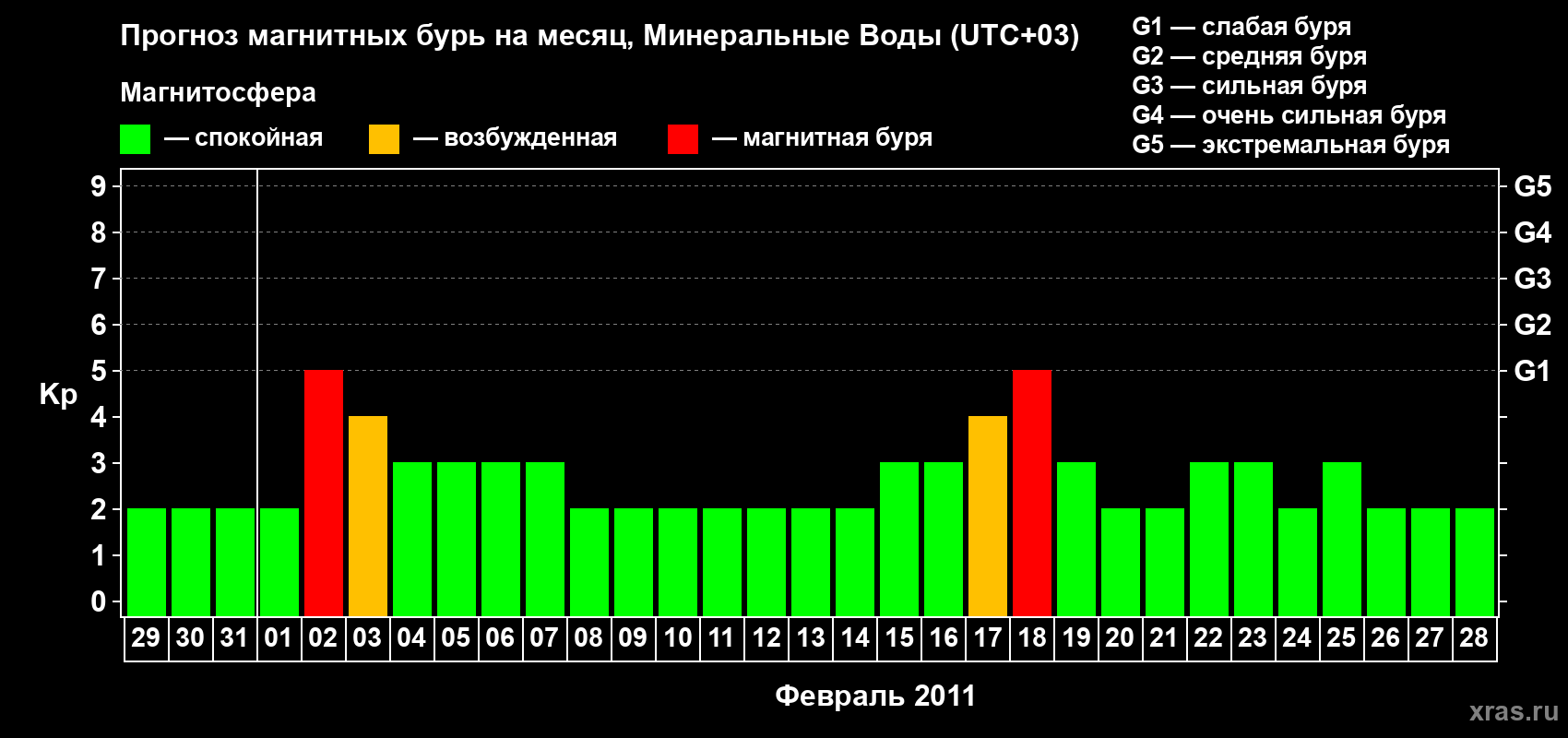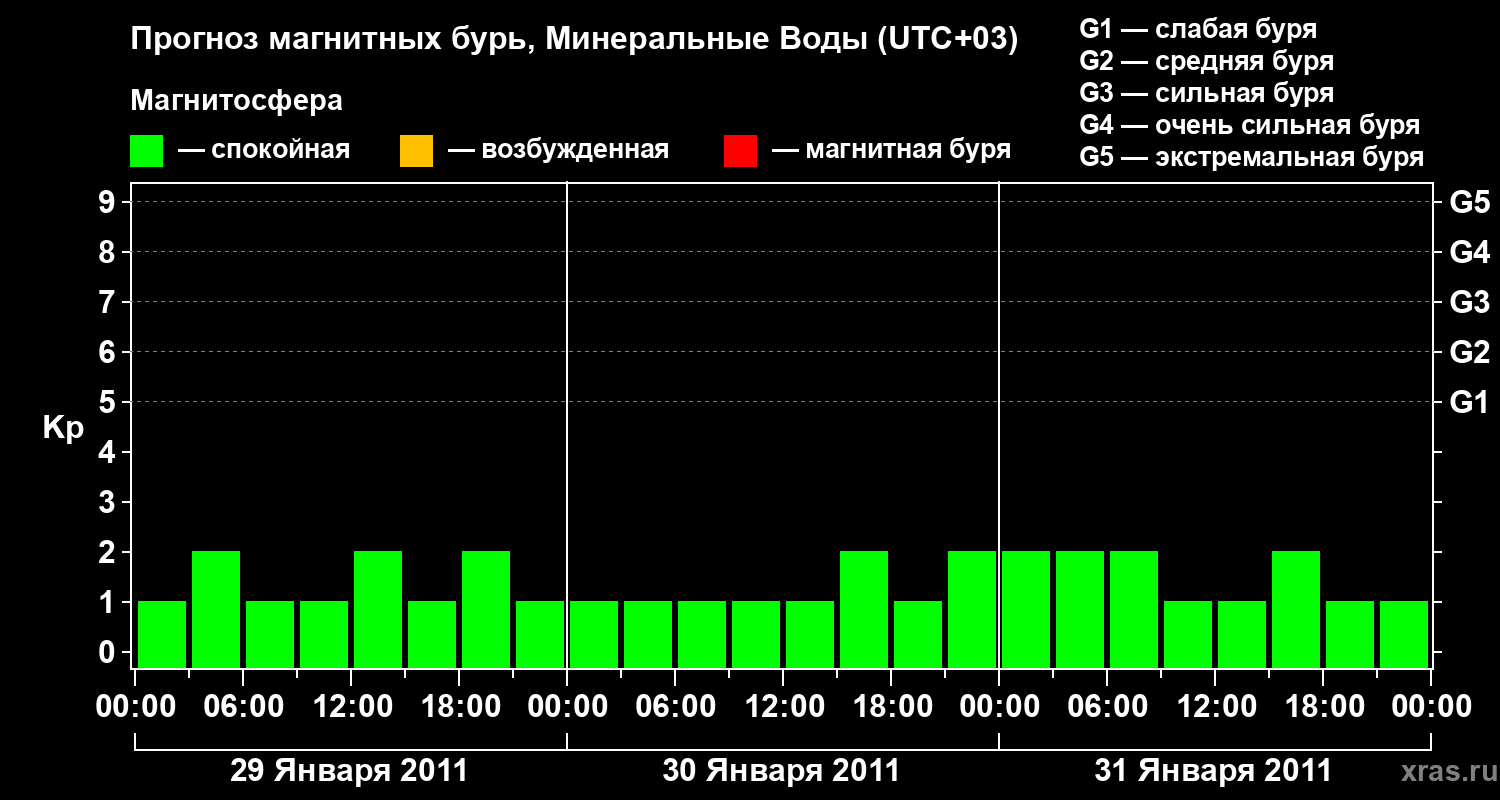 Прогноз магнитных бурь Минеральных Водах — 29 января 2011 года