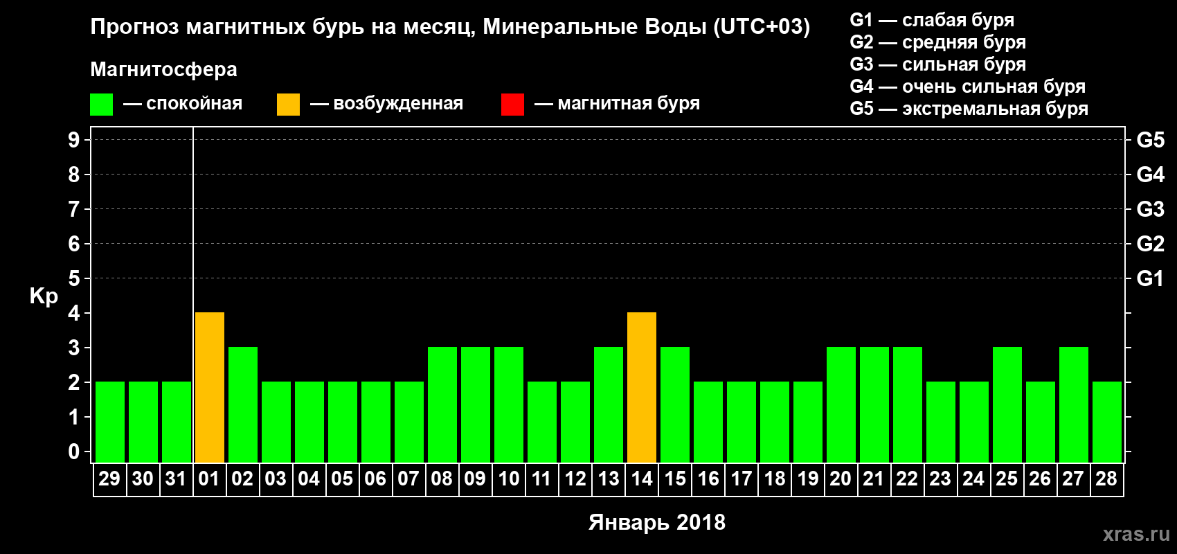 Прогноз магнитных бурь Минеральных Водах — 29 декабря 2017 года