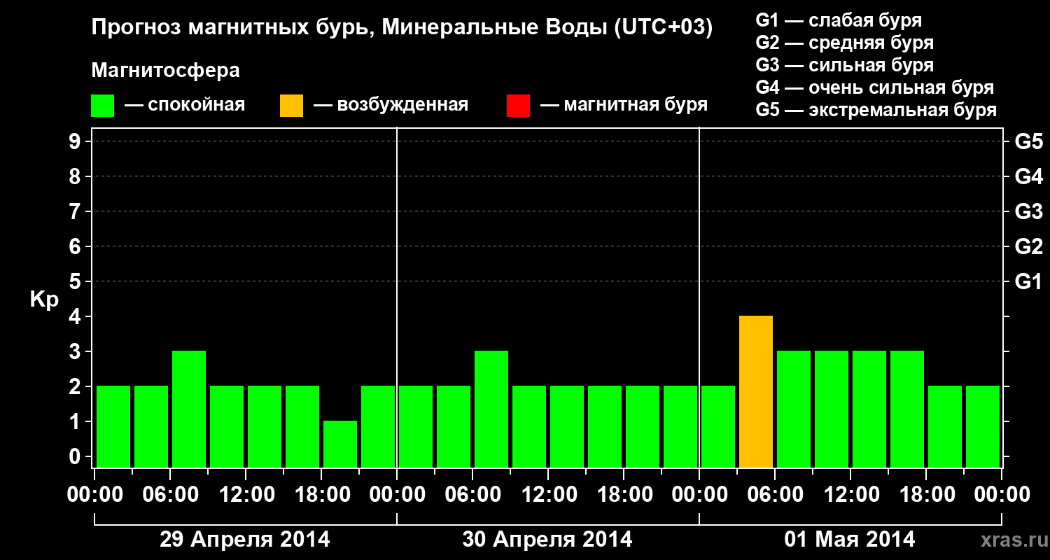 Прогноз магнитных бурь Минеральных Водах — 29 апреля 2014 года