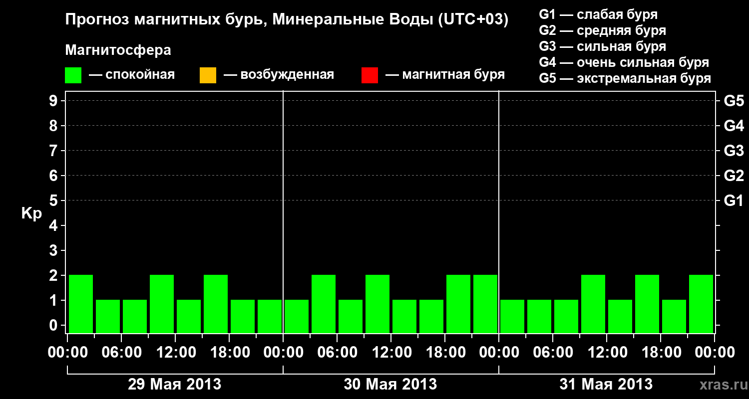 Прогноз магнитных бурь Минеральных Водах — 29 мая 2013 года