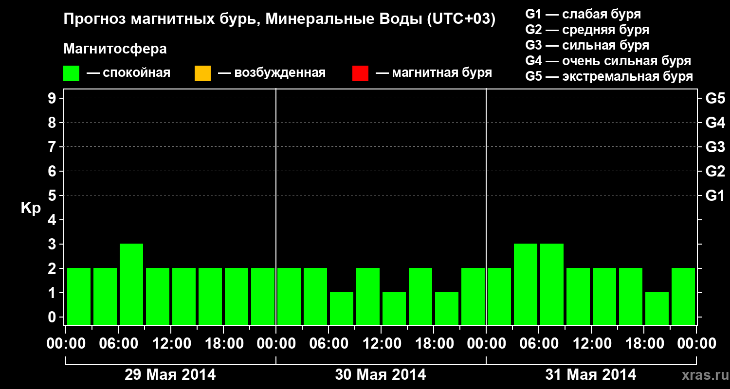 Прогноз магнитных бурь Минеральных Водах — 29 мая 2014 года