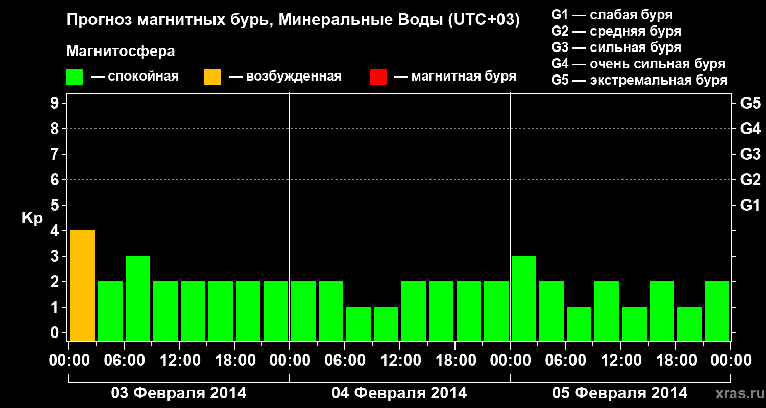 Прогноз магнитных бурь Минеральных Водах — 3 февраля 2014 года