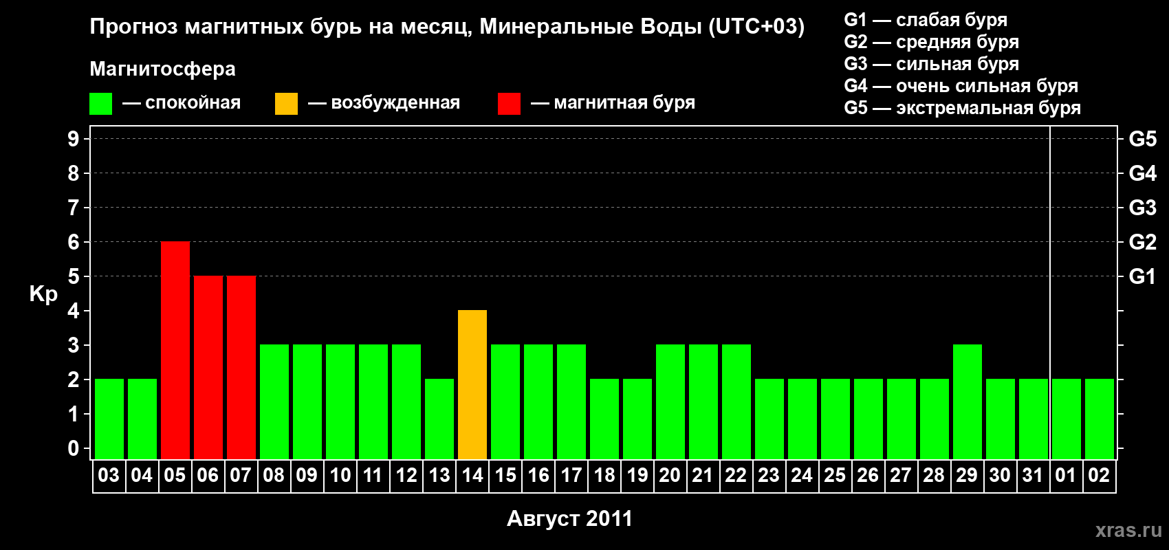 Прогноз магнитных бурь Минеральных Водах — 3 августа 2011 года