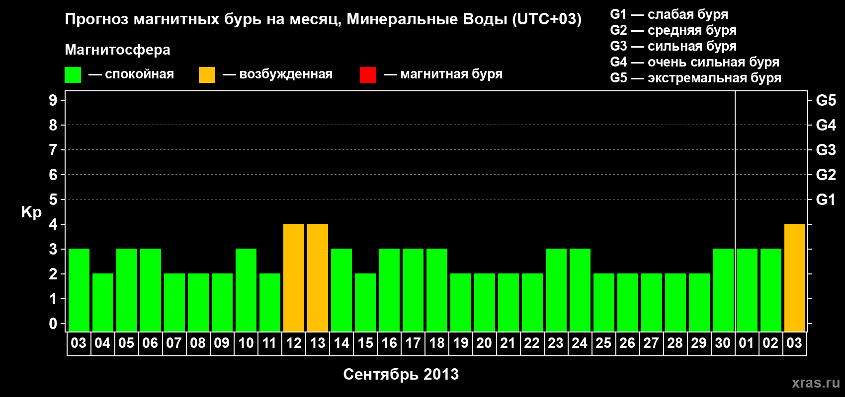 Прогноз магнитных бурь Минеральных Водах — 3 сентября 2013 года