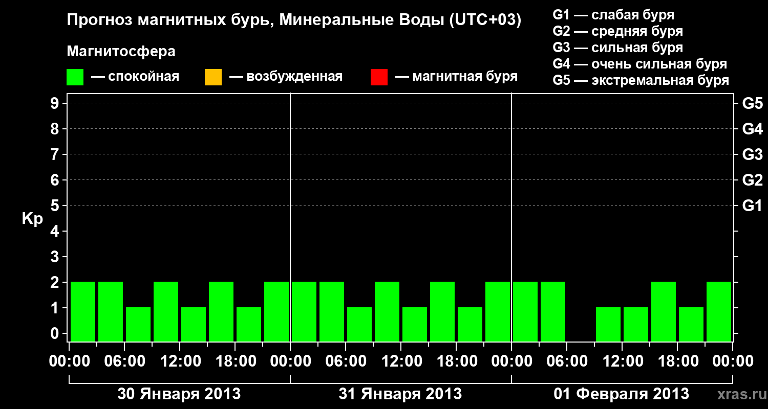 Прогноз магнитных бурь Минеральных Водах — 30 января 2013 года