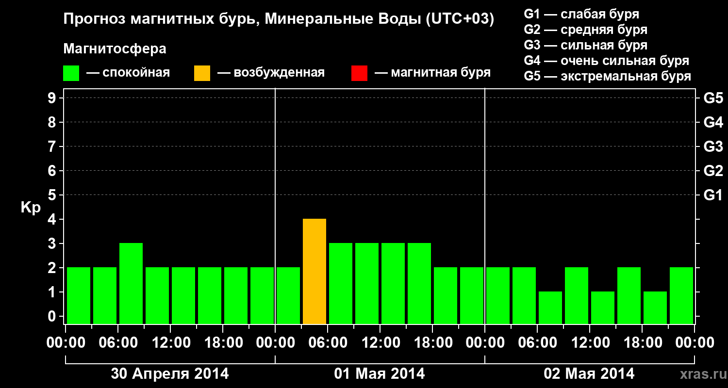 Прогноз магнитных бурь Минеральных Водах — 30 апреля 2014 года