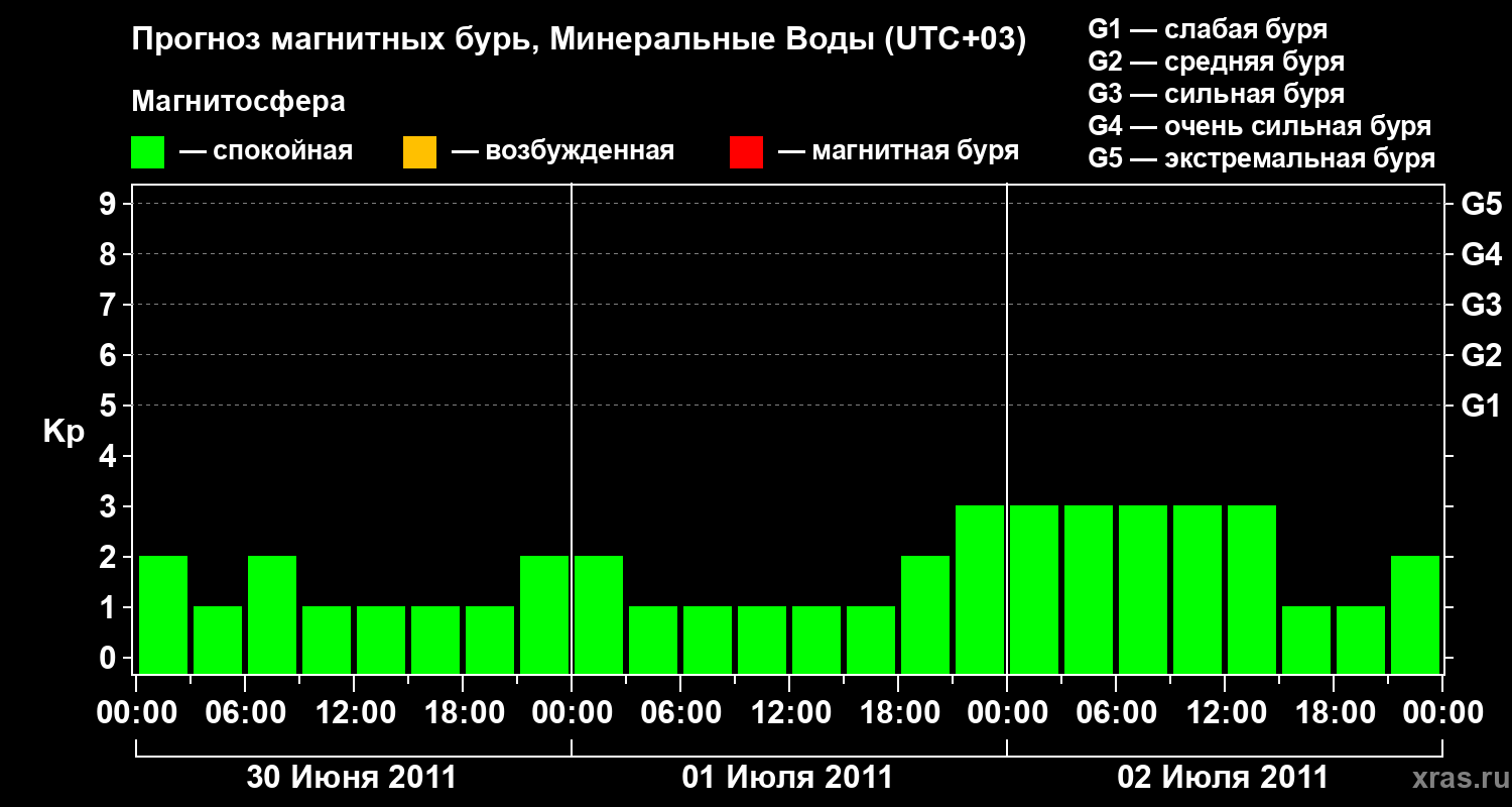 Прогноз магнитных бурь Минеральных Водах — 30 июня 2011 года