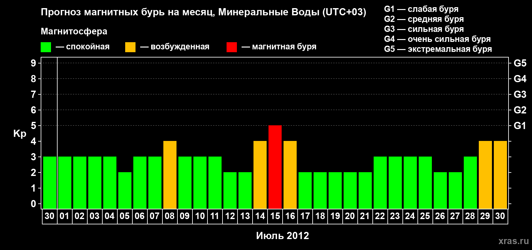 Прогноз магнитных бурь Минеральных Водах — 30 июня 2012 года