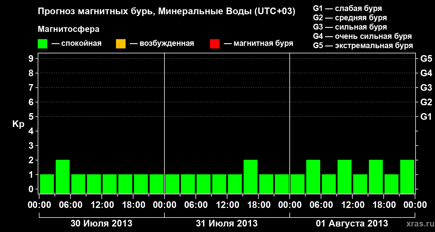 Прогноз магнитных бурь Минеральных Водах — 30 июля 2013 года