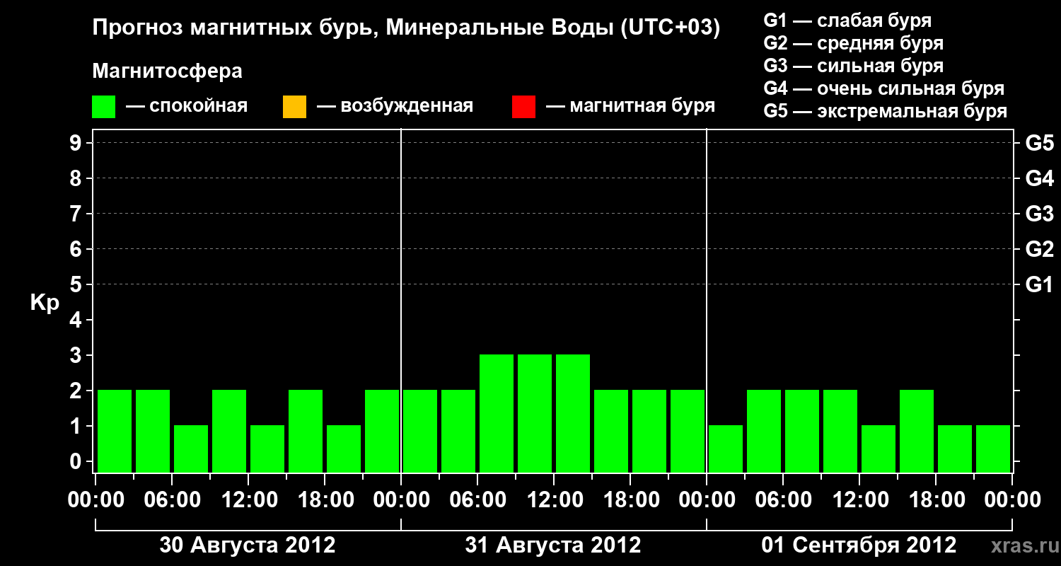 Прогноз магнитных бурь Минеральных Водах — 30 августа 2012 года