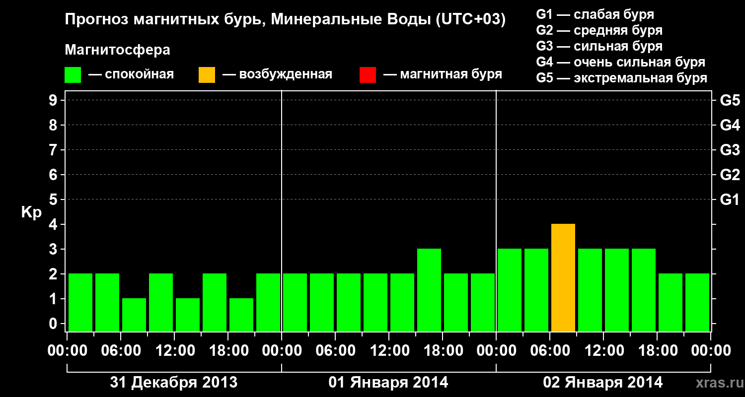 Прогноз магнитных бурь Минеральных Водах — 31 декабря 2013 года