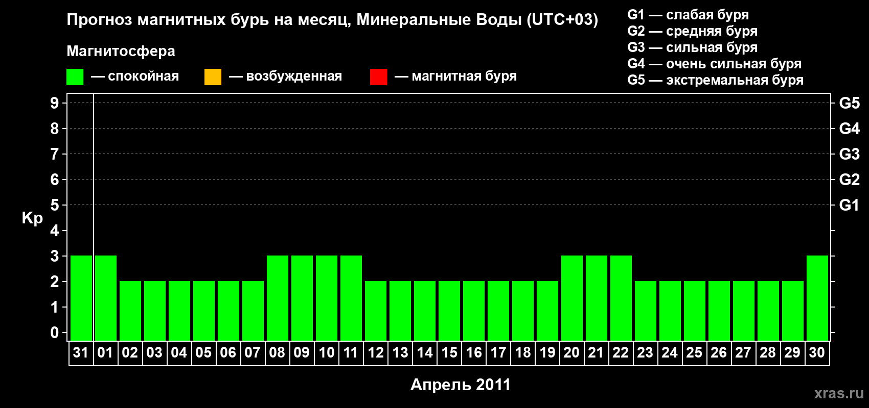 Прогноз магнитных бурь Минеральных Водах — 31 марта 2011 года
