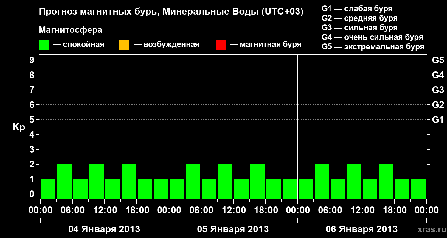Прогноз магнитных бурь Минеральных Водах — 4 января 2013 года