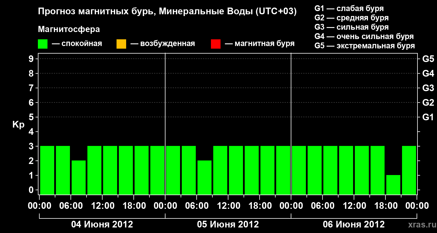 Прогноз магнитных бурь Минеральных Водах — 4 июня 2012 года