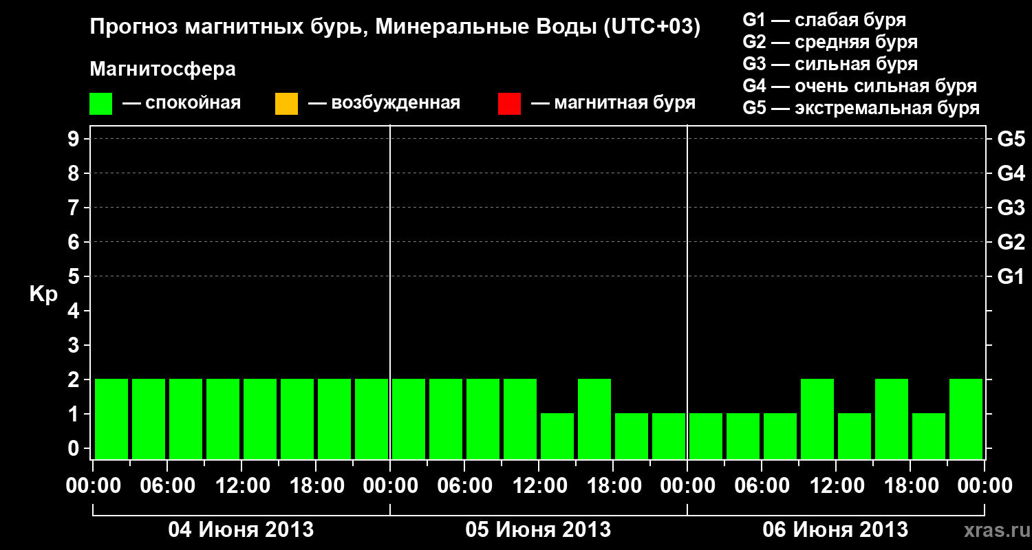 Прогноз магнитных бурь Минеральных Водах — 4 июня 2013 года