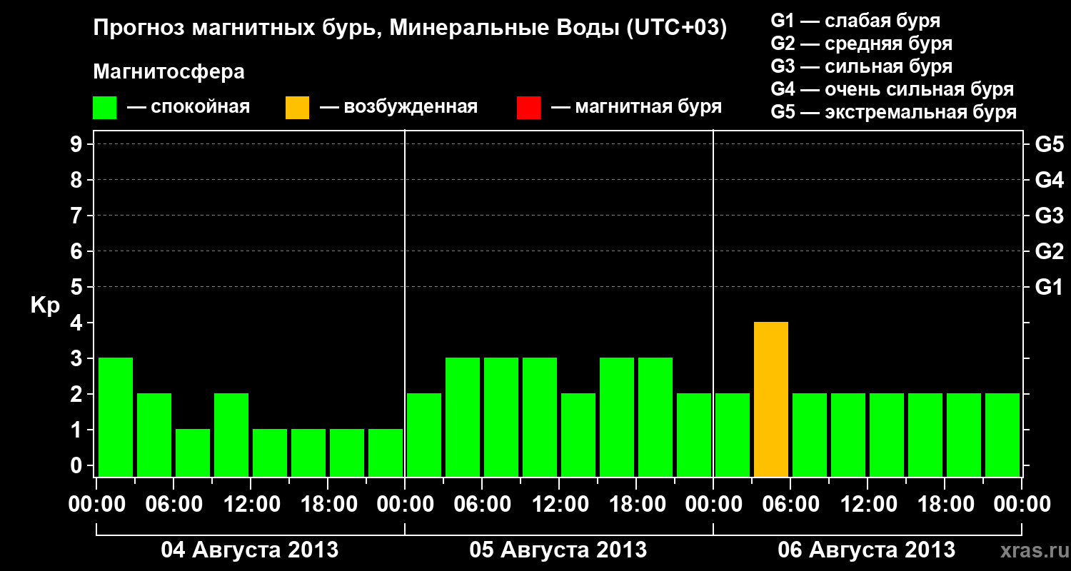 Прогноз магнитных бурь Минеральных Водах — 4 августа 2013 года