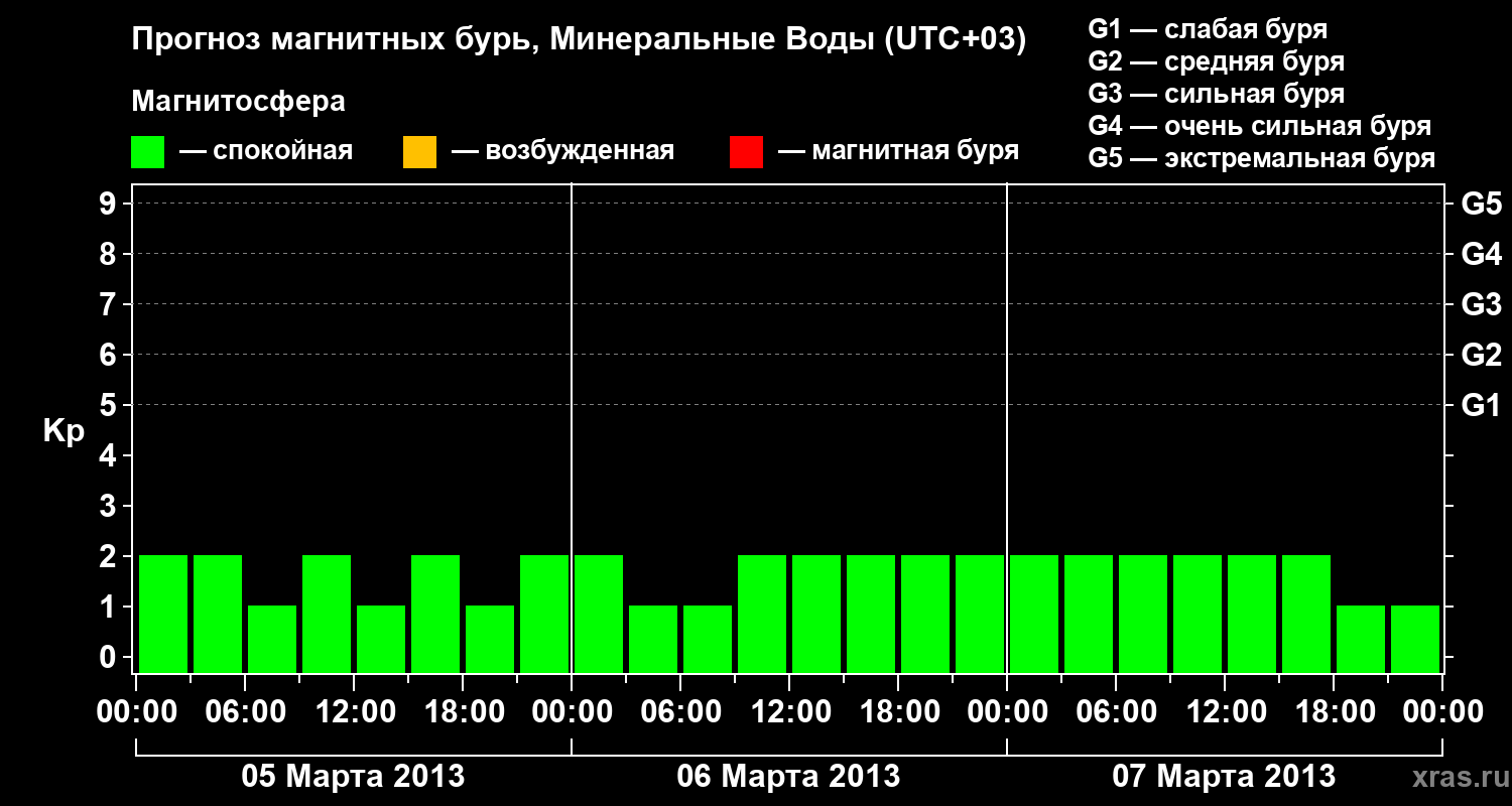 Прогноз магнитных бурь Минеральных Водах — 5 марта 2013 года