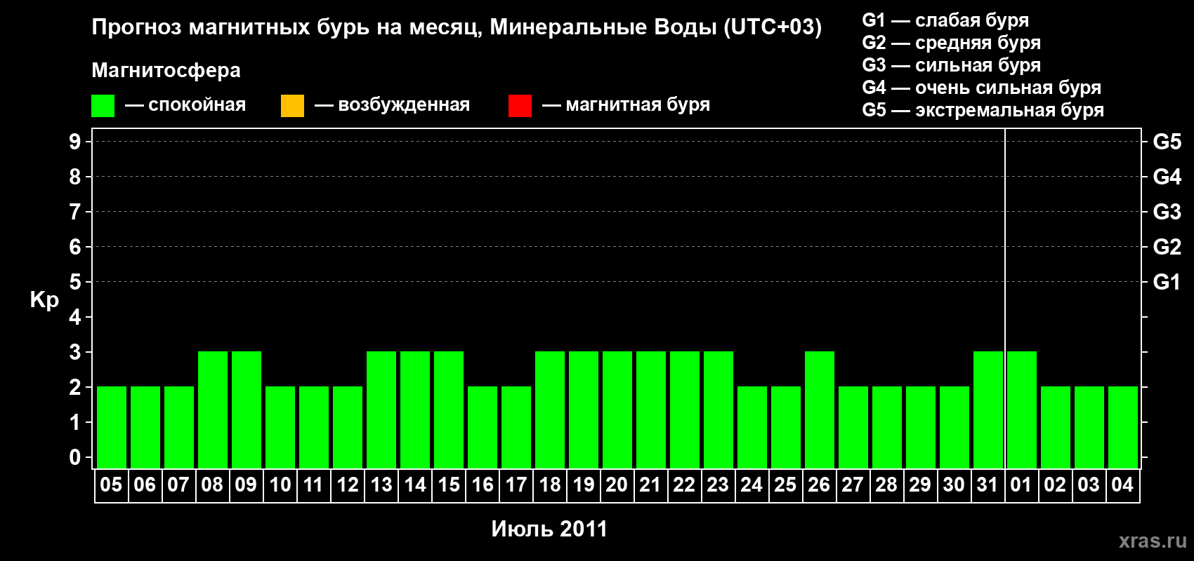 Прогноз магнитных бурь Минеральных Водах — 5 июля 2011 года