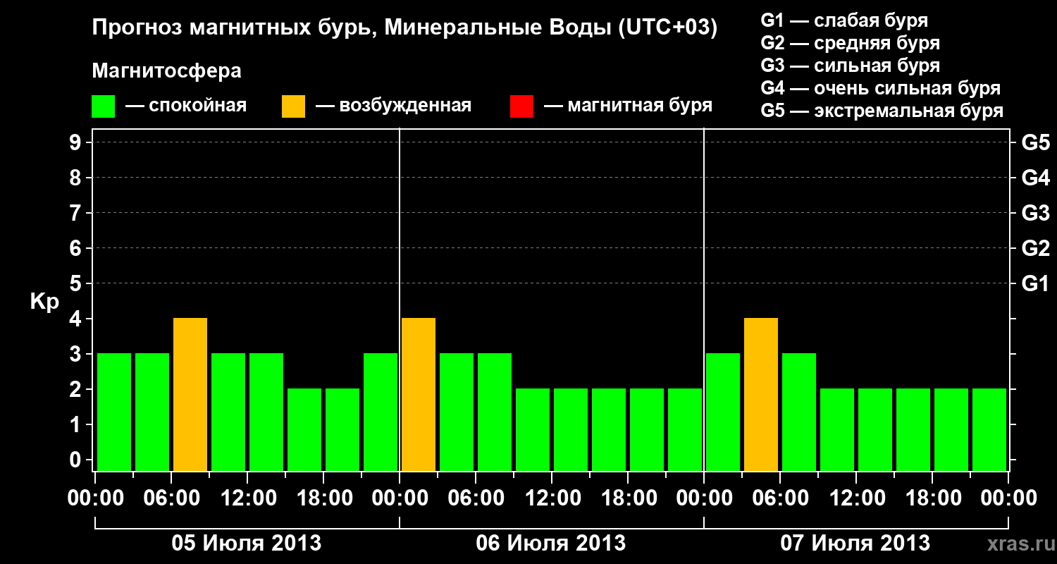 Прогноз магнитных бурь Минеральных Водах — 5 июля 2013 года