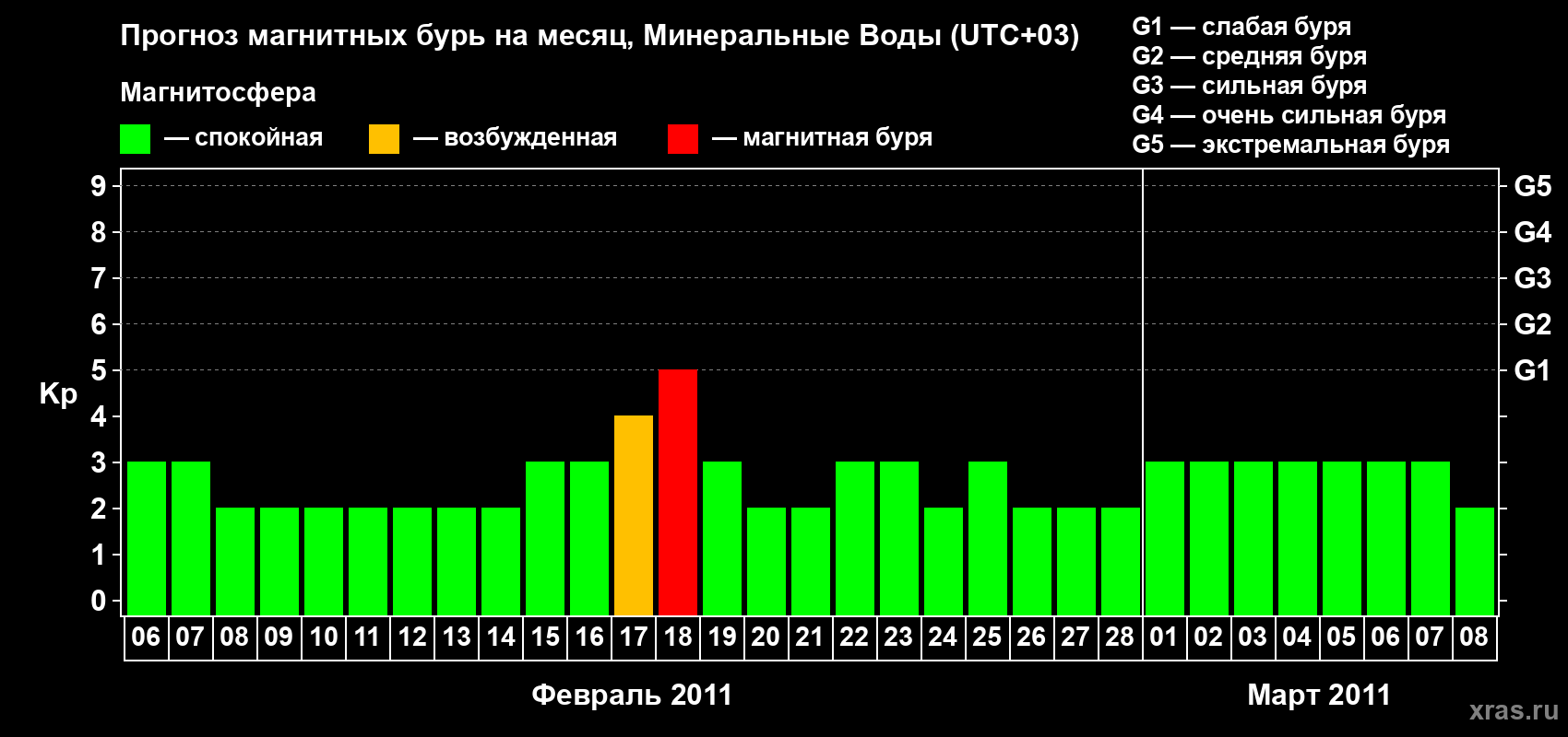 Прогноз магнитных бурь Минеральных Водах — 6 февраля 2011 года