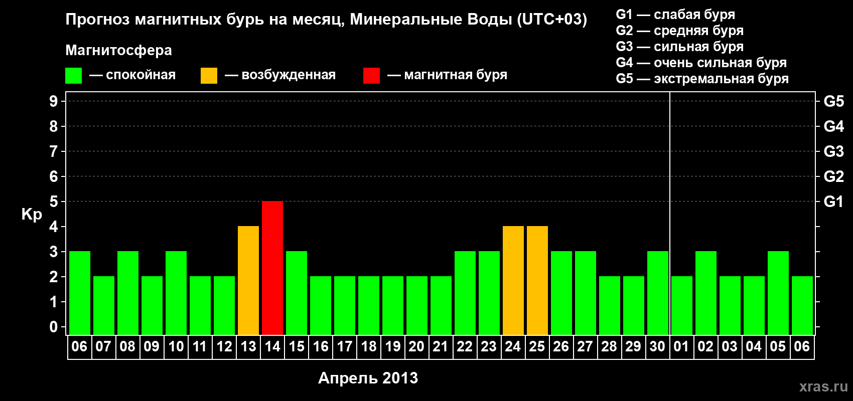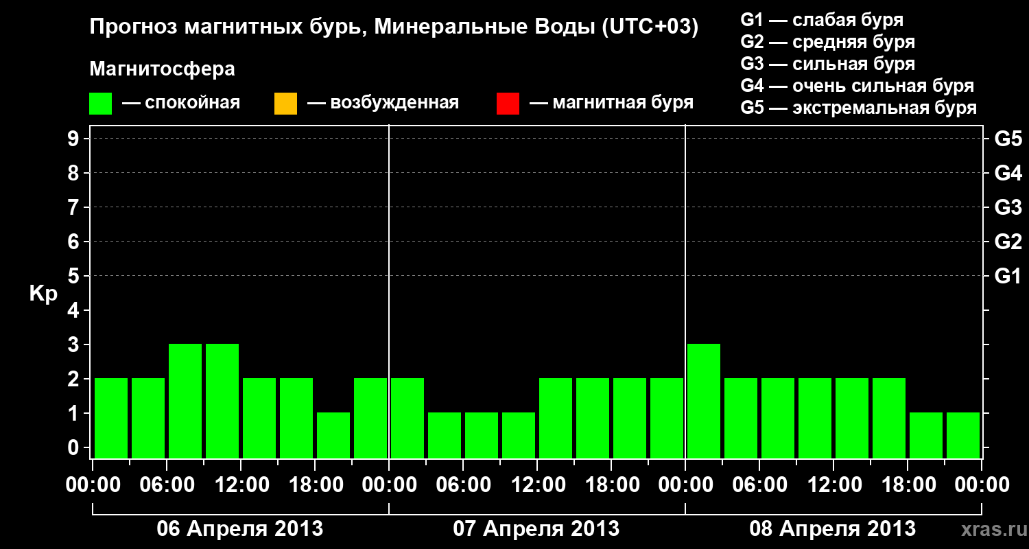 Прогноз магнитных бурь Минеральных Водах — 6 апреля 2013 года