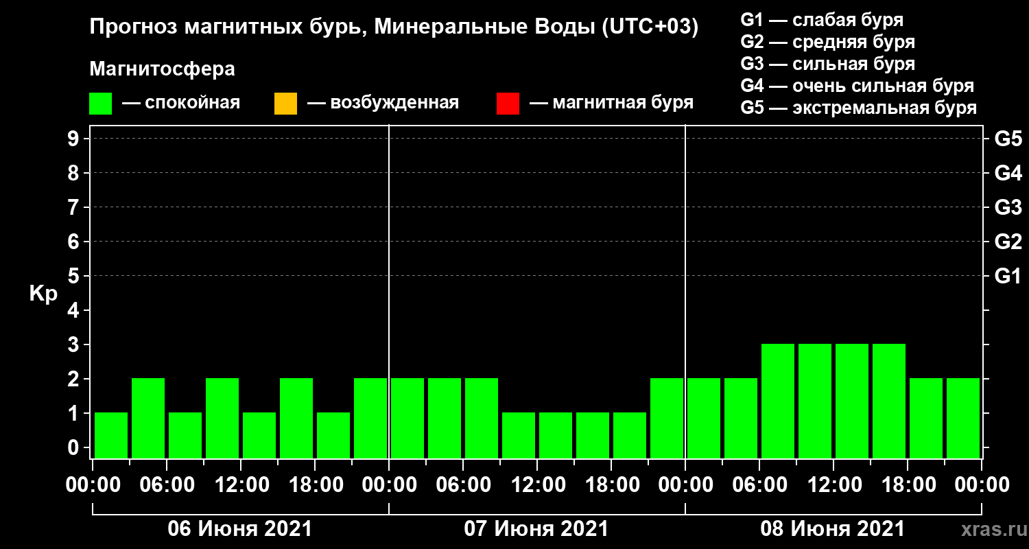 Прогноз магнитных бурь Минеральных Водах — 6 июня 2021 года