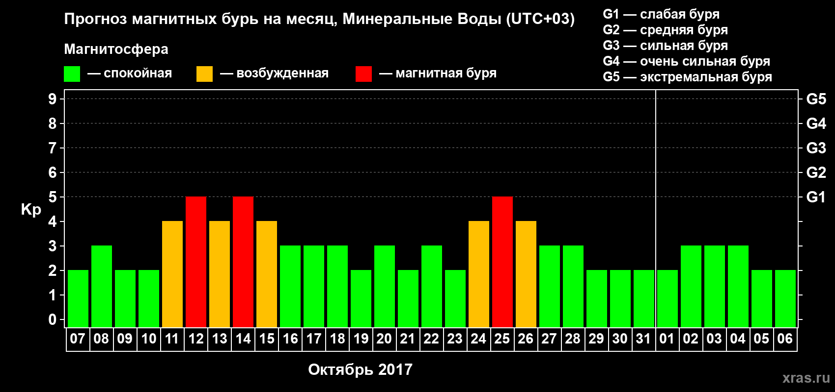 Прогноз магнитных бурь Минеральных Водах — 7 октября 2017 года