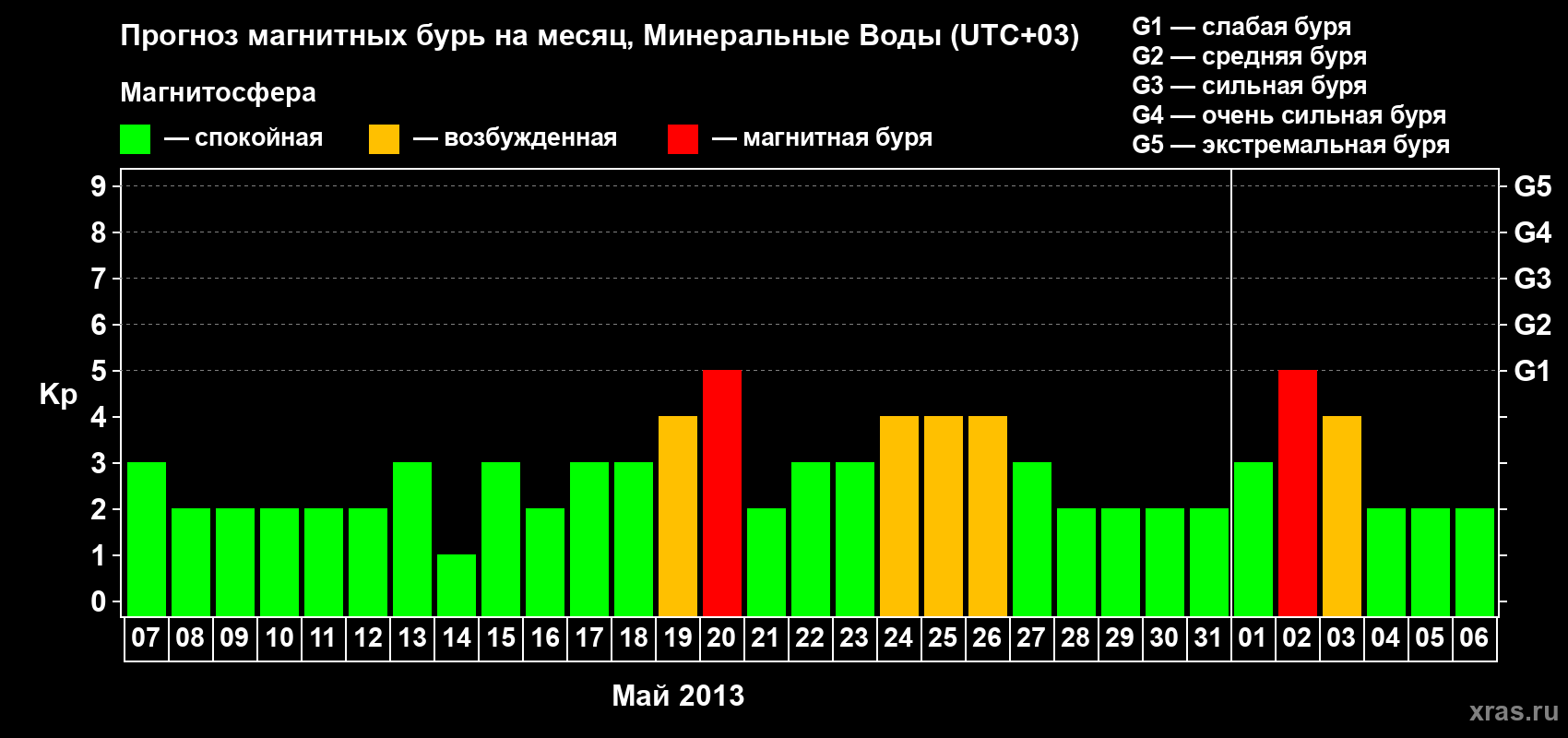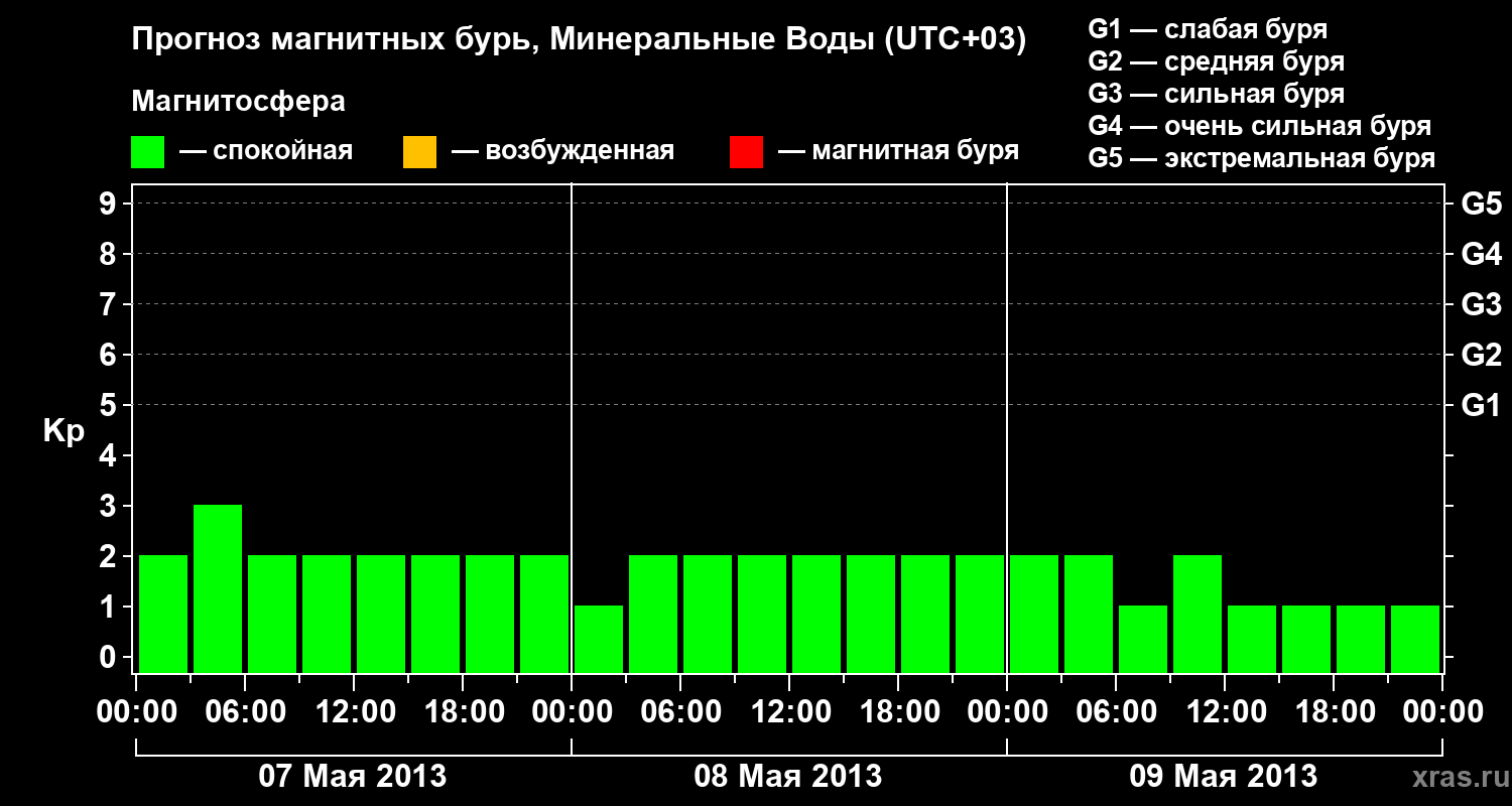 Прогноз магнитных бурь Минеральных Водах — 7 мая 2013 года
