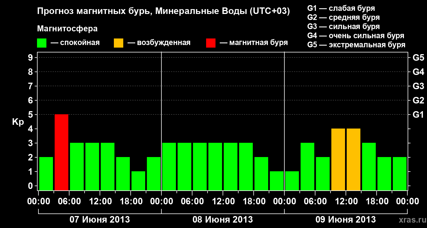 Прогноз магнитных бурь Минеральных Водах — 7 июня 2013 года