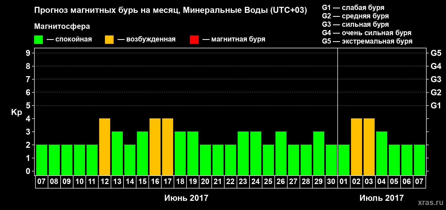 Прогноз магнитных бурь Минеральных Водах — 7 июня 2017 года