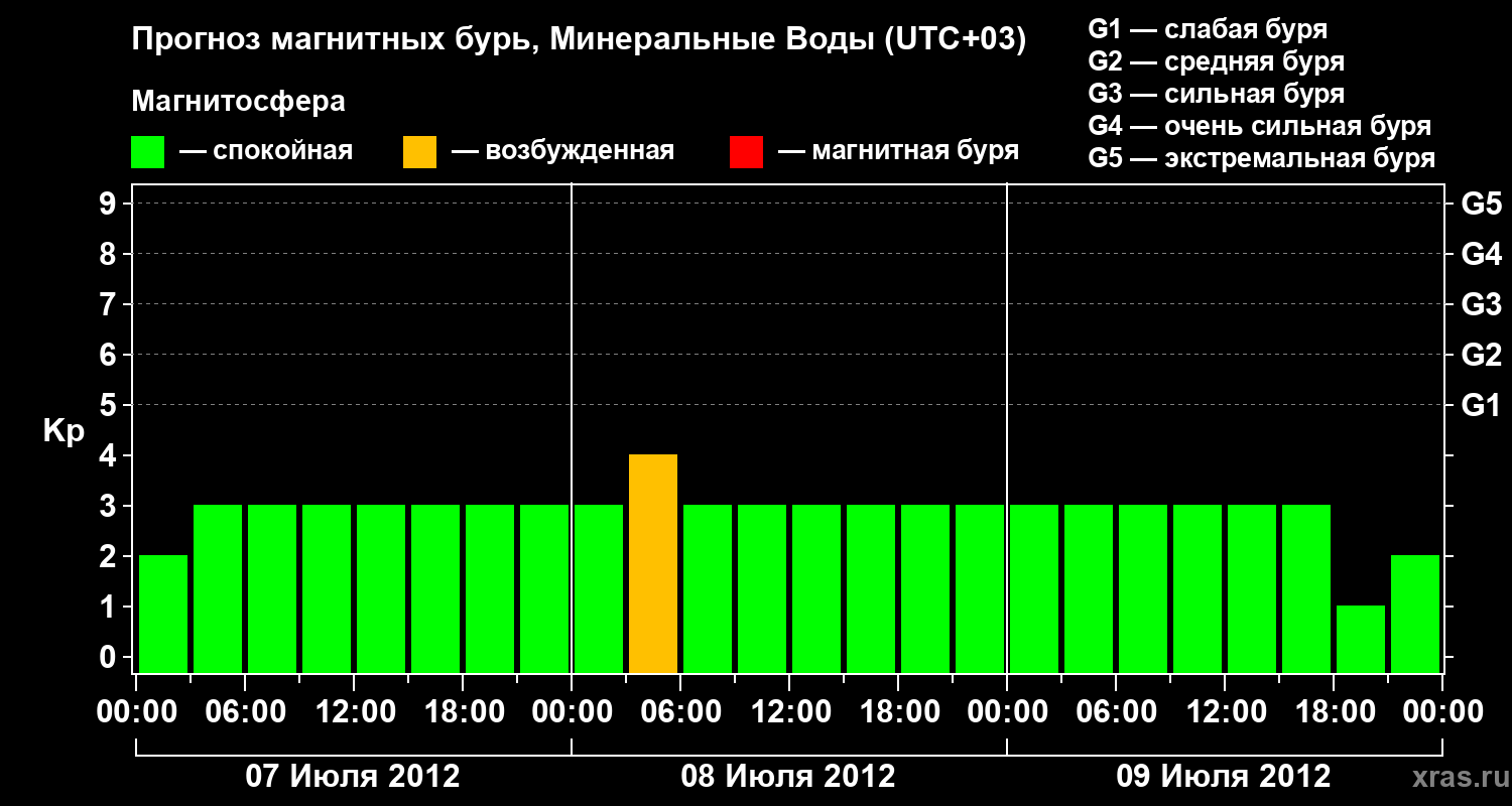 Прогноз магнитных бурь Минеральных Водах — 7 июля 2012 года