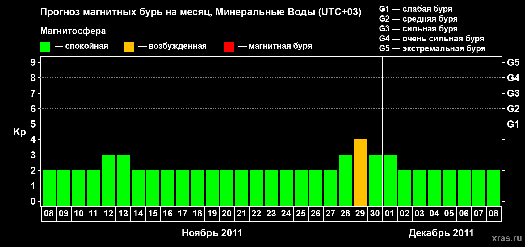 Прогноз магнитных бурь Минеральных Водах — 8 ноября 2011 года