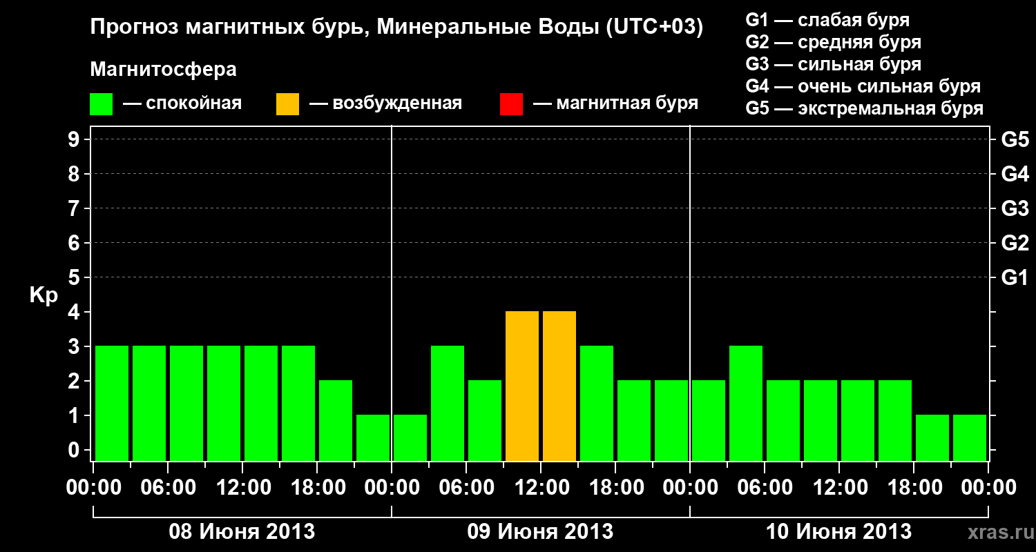 Прогноз магнитных бурь Минеральных Водах — 8 июня 2013 года