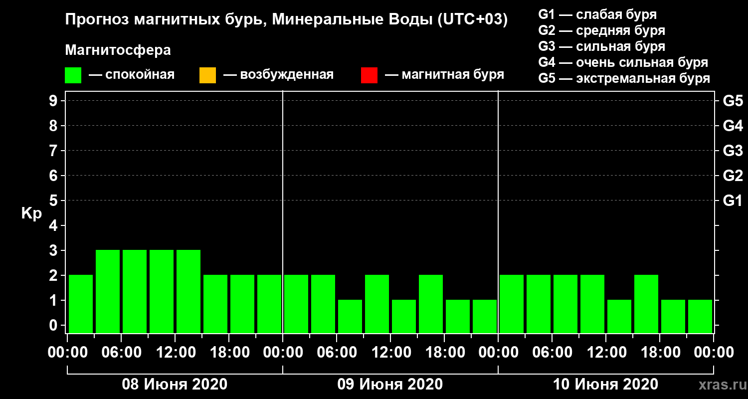 Прогноз магнитных бурь Минеральных Водах — 8 июня 2020 года