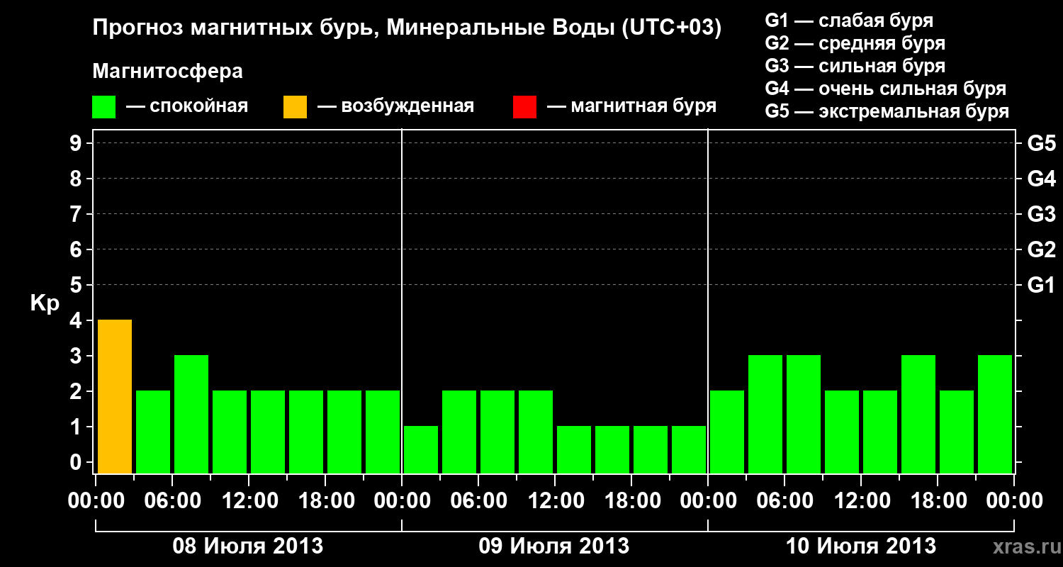 Прогноз магнитных бурь Минеральных Водах — 8 июля 2013 года