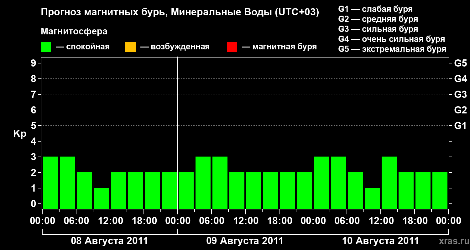 Прогноз магнитных бурь Минеральных Водах — 8 августа 2011 года
