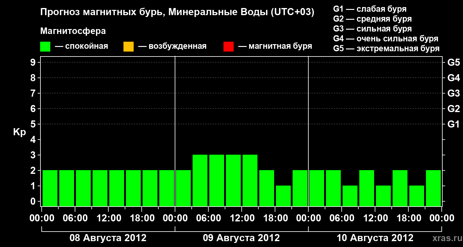 Прогноз магнитных бурь Минеральных Водах — 8 августа 2012 года