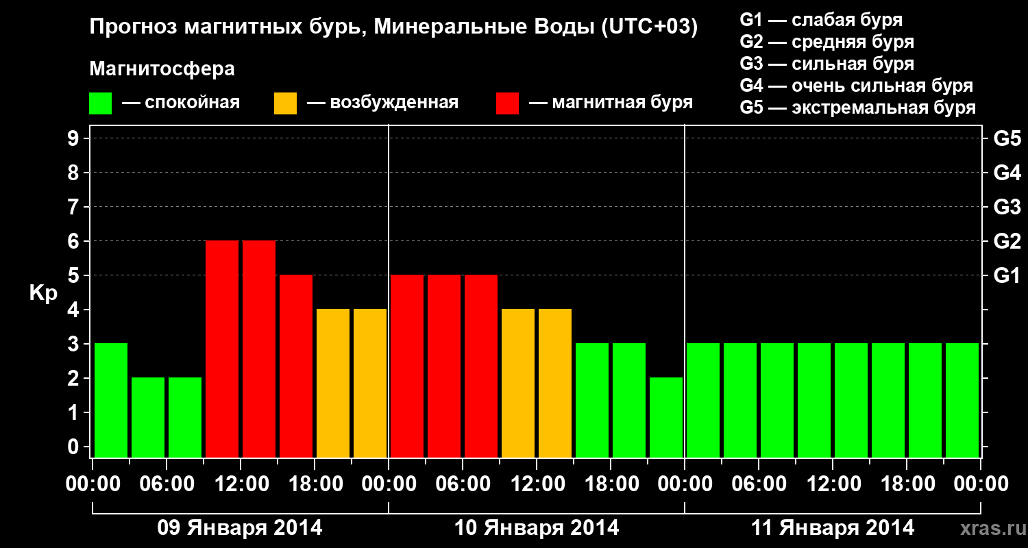 Прогноз магнитных бурь Минеральных Водах — 9 января 2014 года