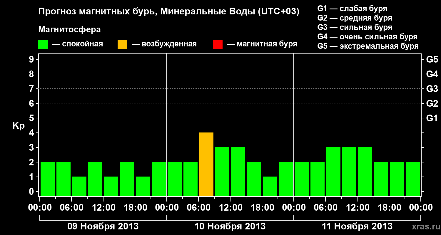 Прогноз магнитных бурь Минеральных Водах — 9 ноября 2013 года