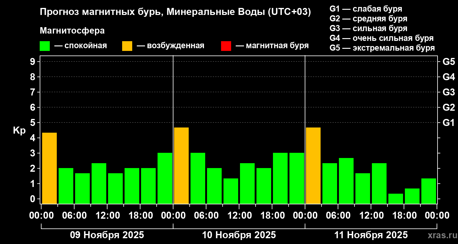 Прогноз магнитных бурь Минеральных Водах — 9 ноября 2025 года