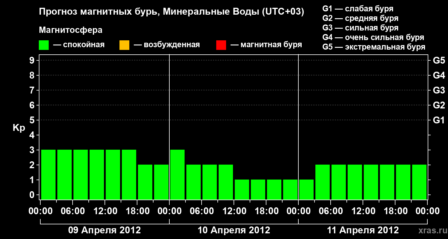 Прогноз магнитных бурь Минеральных Водах — 9 апреля 2012 года