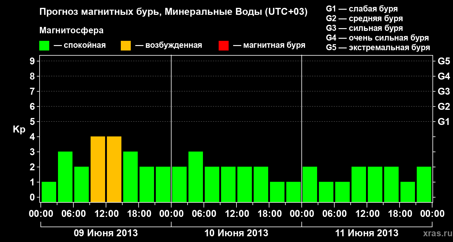 Прогноз магнитных бурь Минеральных Водах — 9 июня 2013 года