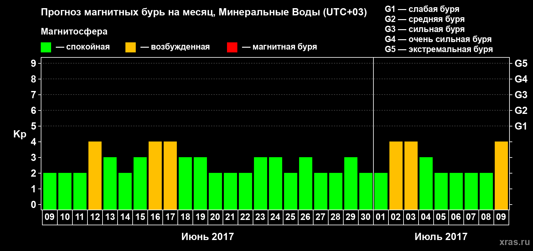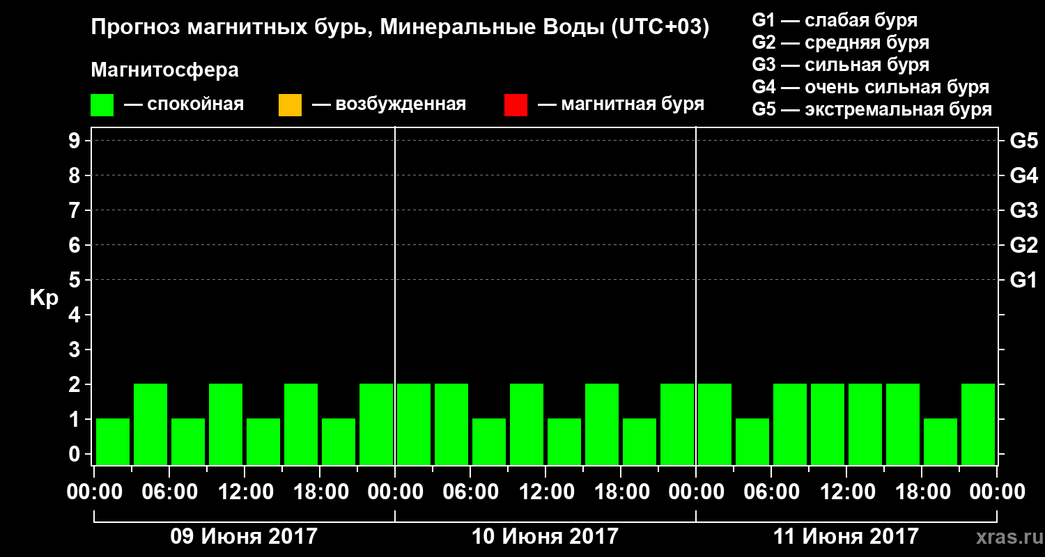 Прогноз магнитных бурь Минеральных Водах — 9 июня 2017 года