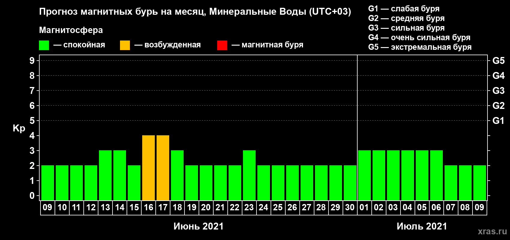 Прогноз магнитных бурь Минеральных Водах — 9 июня 2021 года