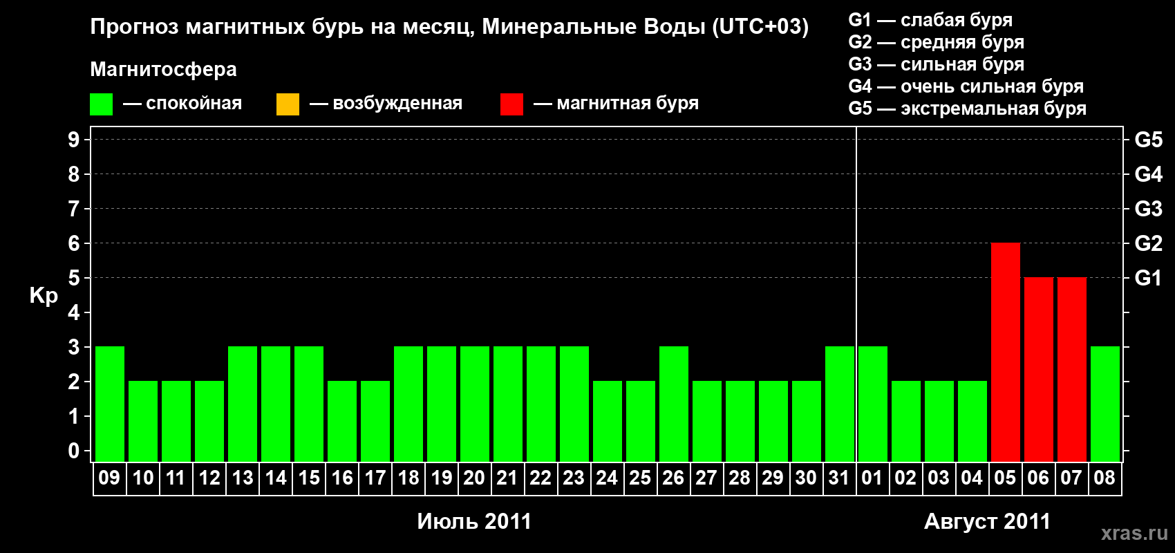 Прогноз магнитных бурь Минеральных Водах — 9 июля 2011 года