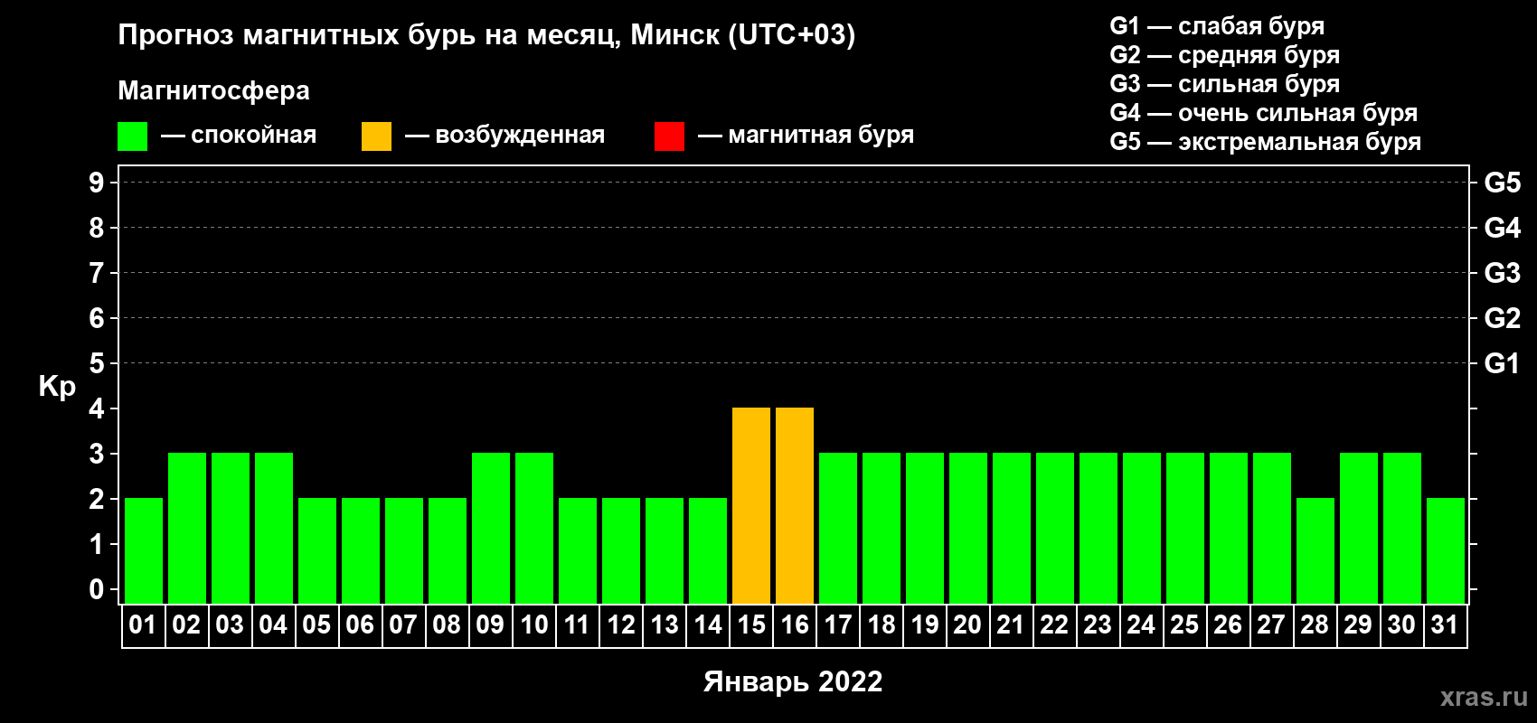 Прогноз магнитных бурь в Минске — 1 января 2022 года